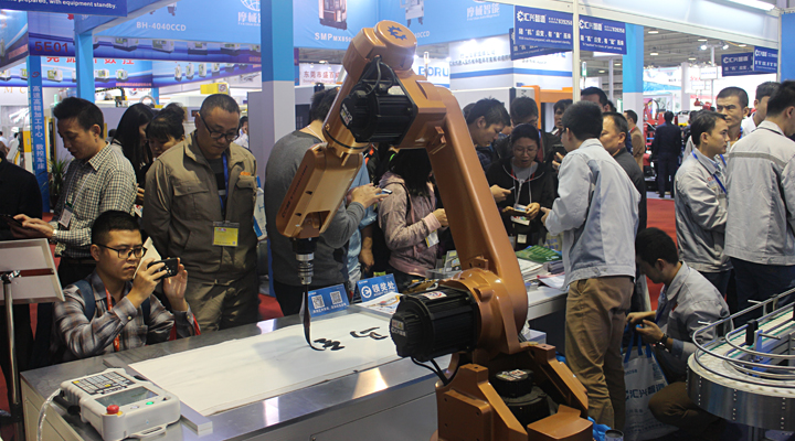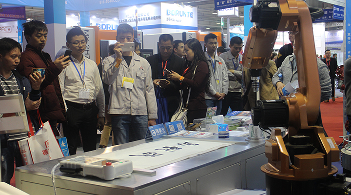 匯興智造推崇中國傳統文化,一直以傳承弘揚中國文化為己任,把中國傳統文化揉入工廠運營、產品設備已是一派自然而然。由匯興智造自主研發的書法機器人在本次博覽會上大展拳腳,深情演繹中國書法。