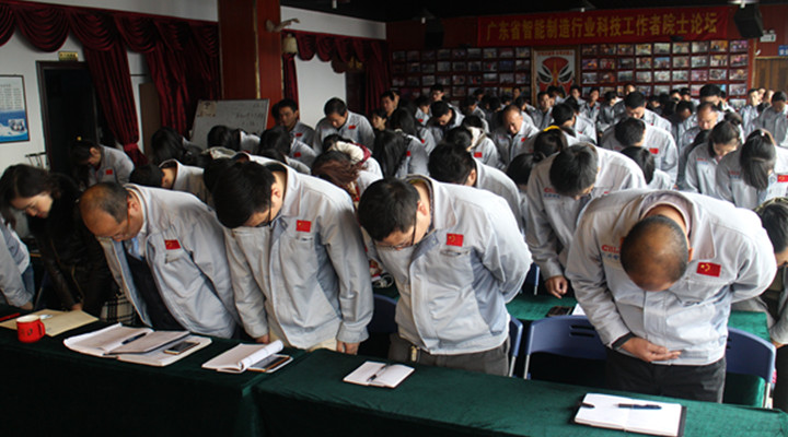 全體員工宣導企業理念,并向企業“商道、孝道、人道”行三鞠躬