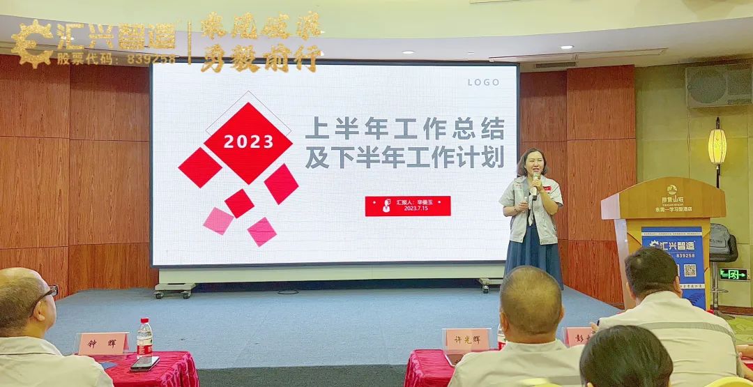 喜悅伴著汗水,成功伴著艱辛,遺憾激勵奮斗。不知不覺,2023年度我們已經一起走過了半年。為了總結回顧上半年度的工作完成情況、嘉許優秀團隊,同時啟動下半年主要工作,進一步同步思想、一起努力,推動各項工作在下半年再上新的臺階。2023年7月15日,匯興智造集團在隱賢山莊成功舉辦“乘風破浪,勇毅前行——匯興智造2023年上半年經營總結暨下半年工作規劃大會”。鐘董事長、辛總、公司在廠領導班子、總部未出差在廠全體員工出席會議,各子(分)公司負責人及員工視頻連線參會。會議由人事行政部袁經理主持。